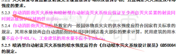5.2.3 自動消防炮滅火系統和噴射型自動射流滅火系統應保證至少兩臺滅火裝置的射流同時到達被保護區域的任意部位。