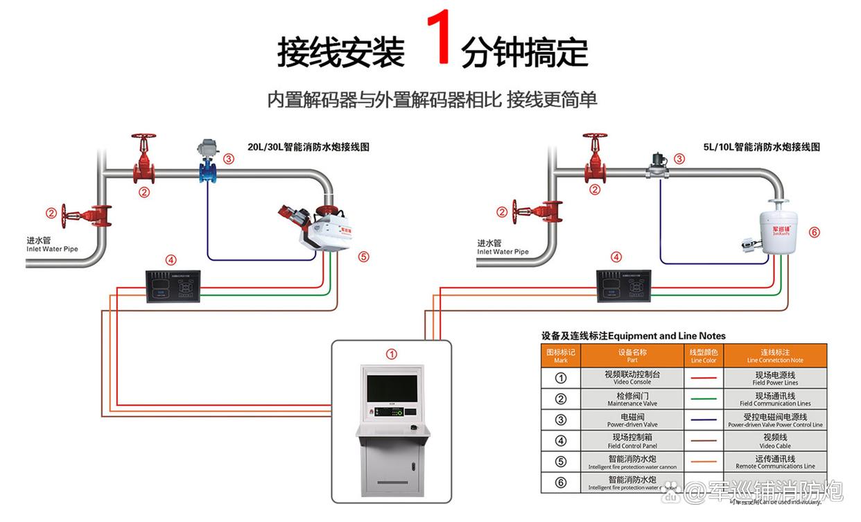 另一個提升競爭力的關(guān)鍵因素是內(nèi)置解碼器和電源盒的設(shè)計。這種設(shè)計的巧妙之處在于簡化了安裝組件(外置解碼器,一個是解碼器需要固定,二是解碼器接線盒中線路多,接線麻煩),布線更為簡單,極大地提高了安裝速度和減少了工時。在追求高效率的當下,能夠快速投入使用的消防水炮無疑更具吸引力。此外,內(nèi)置技術(shù)的加入還意味著維護更加方便快捷,對于后期的操作管理帶來了極大的便利。